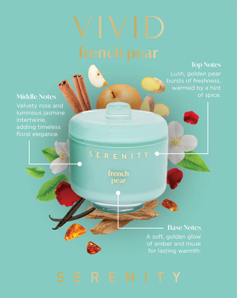 The FragranceCrisp, green pear notes infused with floral rose and finished with woody musk.Details230g Candle