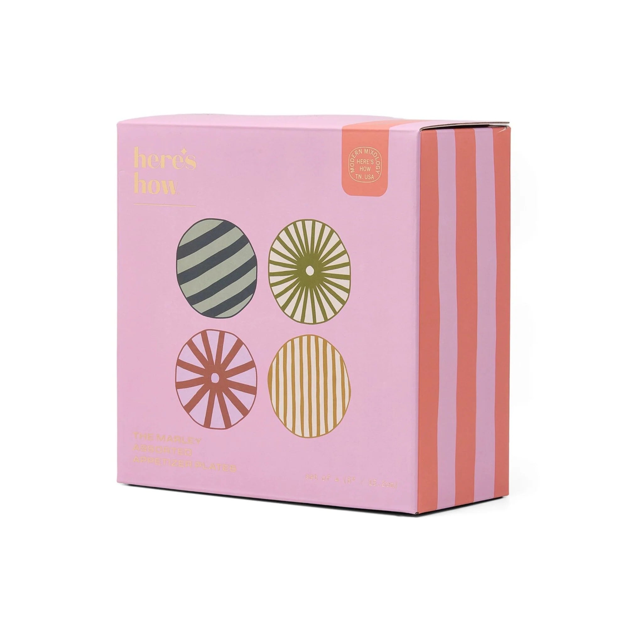 Add a pop of playful charm to your table with The Marley Appetizer Plates. This vibrant set of four side plates features bold, mix and match patterns in a colourful palette perfect for entertaining, grazing boards, or elevating your everyday nibbles.