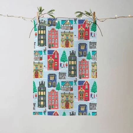This eclectic tea towel features a selection of quirky but traditional Christmas Houses. Look closer and discover the stories told by this beautifully illustrated design.